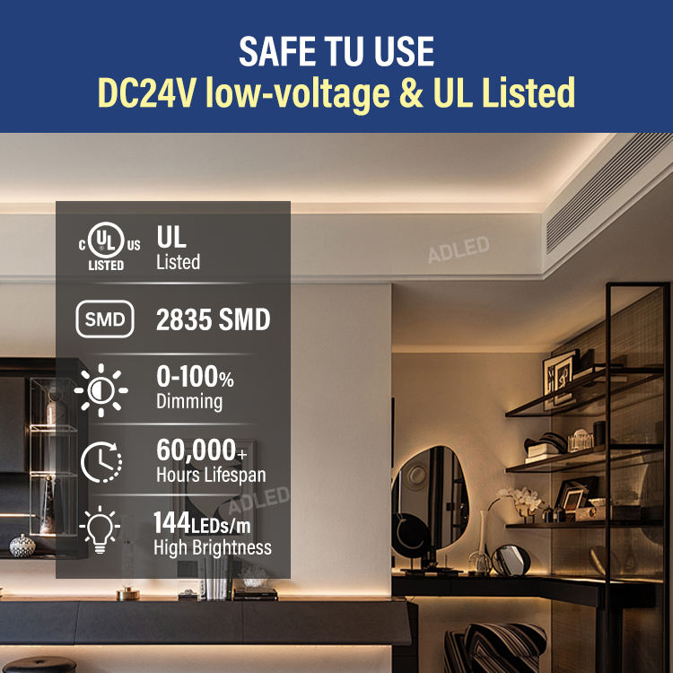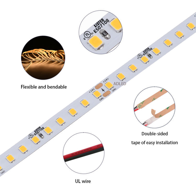 แถบไฟ LED SMD LED 200LM CRI90/W SMD2835 144ดวง/ม. DC24V IP65 8มม. กันน้ำมีความยืดหยุ่นริบบิ้นดีไซน์ตู้ครัว