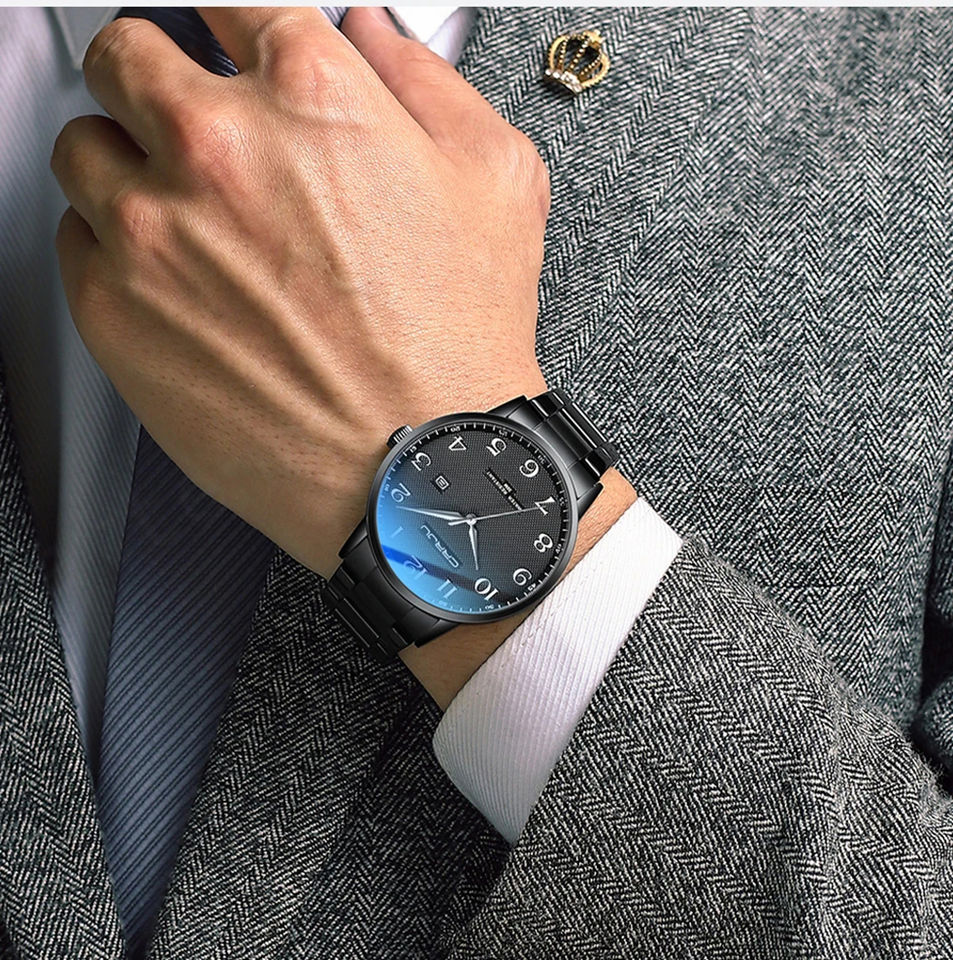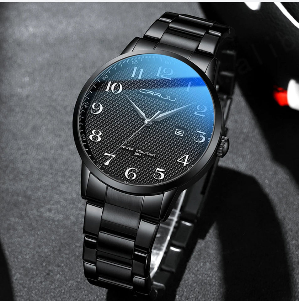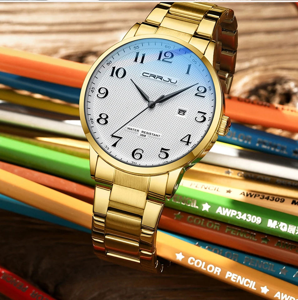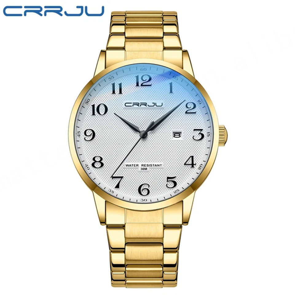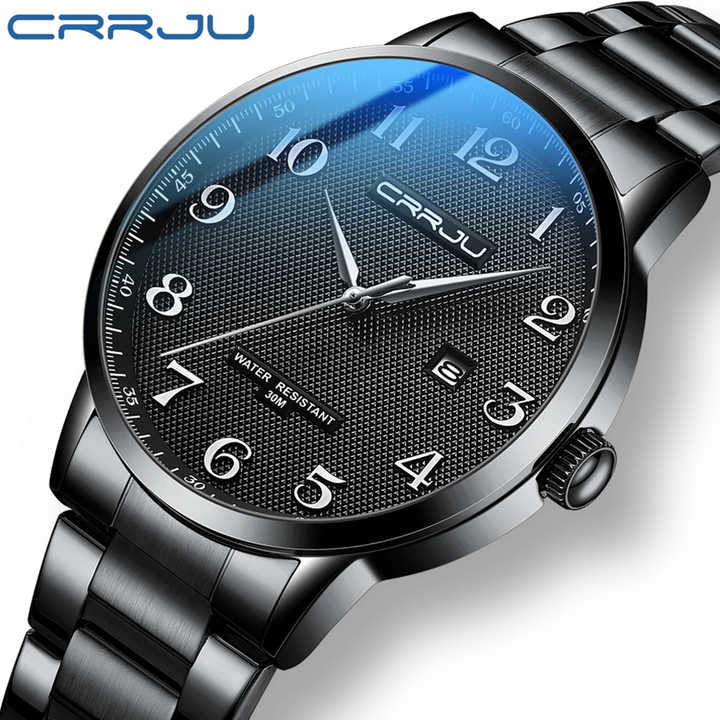 Crrju นาฬิกาข้อมือควอตซ์แนวสปอร์ตแฟชั่นหรูหราสำหรับผู้ชาย, นาฬิกาข้อมือควอตซ์5009สแตนเลสปุ่มกดแบบซ่อนตะขอกันน้ำวันที่