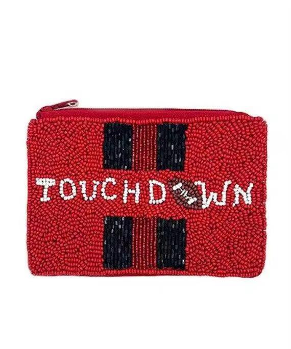 กระเป๋าใส่เหรียญปักลูกปัดลายทีมกีฬา งานแฮนด์เมด CRYSTAL CRAFT สำหรับวันแข่งขัน ปักลายด้วยมือ ซิปสองด้าน