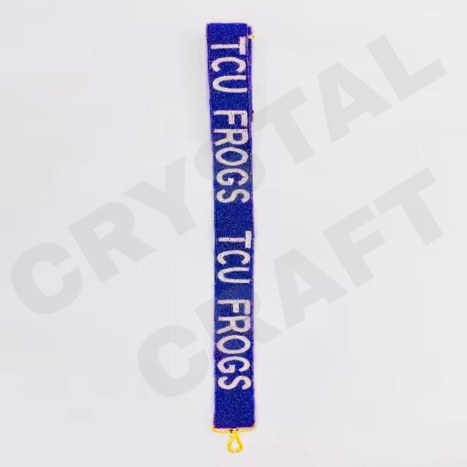 คริสตัลงานฝีมือ TCU กบลูกปัดแก้วสายคล้องกระเป๋าลูกปัดสีแบบกำหนดเองสไตล์อินเดียปรับขนาดได้โลโก้ตามต้องการ