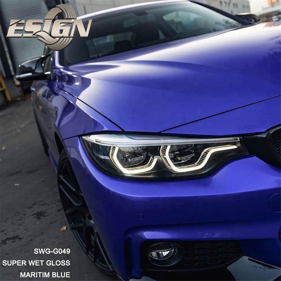 ฟิล์มป้องกันรอยขีดข่วนตัวถังรถยนต์สีฟ้าน้ำทะเลมันวาวใสสติกเกอร์พีวีซีไวนิลแพ็คฟิล์มติดรถยนต์เปลี่ยนสีได้ทั้งตัว