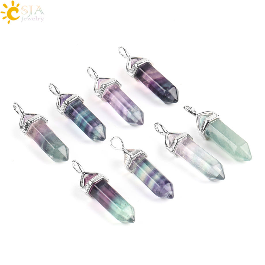 Csja สร้อยหินฟลูออไรต์ธรรมชาติจี้กระสุนคริสตัลจี้สร้อยคอหกเหลี่ยมจี้เรกิจักระ E546เครื่องประดับ