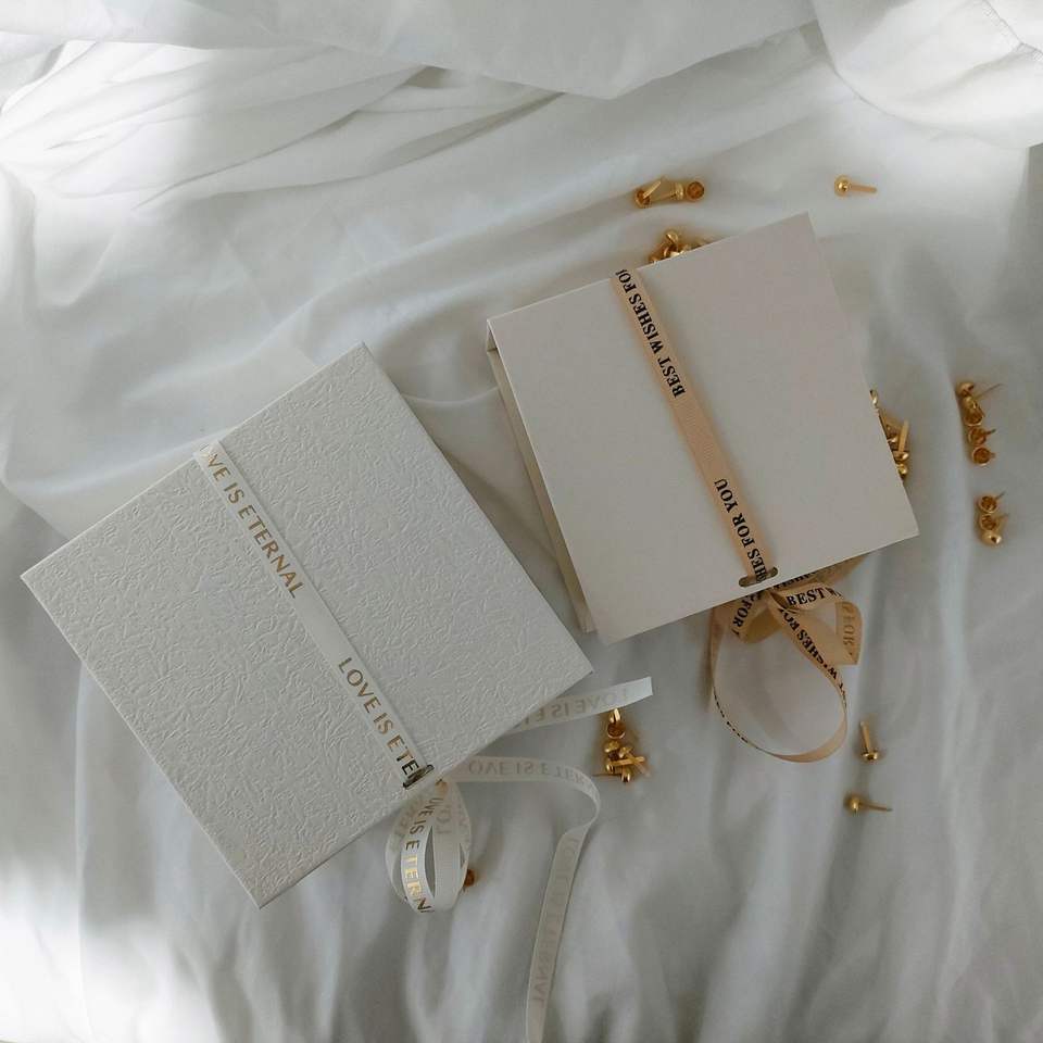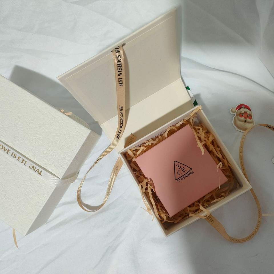 CSMD ผู้ผลิตจีนขั้นต่ํา 1,000 ชิ้นปรับแต่งหนังสือรูปร่างริบบิ้นปิดกระดาษแข็งหรูหรากล่องของขวัญสีขาวสําหรับเครื่องสําอาง