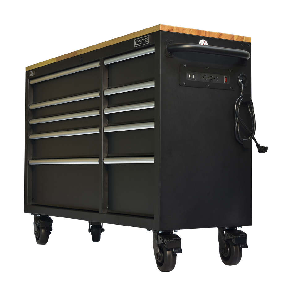 ตู้เก็บเครื่องมือเหล็กเคลือบผง CSPS ทนทาน 10 ลิ้นชัก กว้าง 132 ซม. สีดำ พร้อมกุญแจล็อค OEM สำหรับเก็บของในโรงงาน/อู่ซ่อม