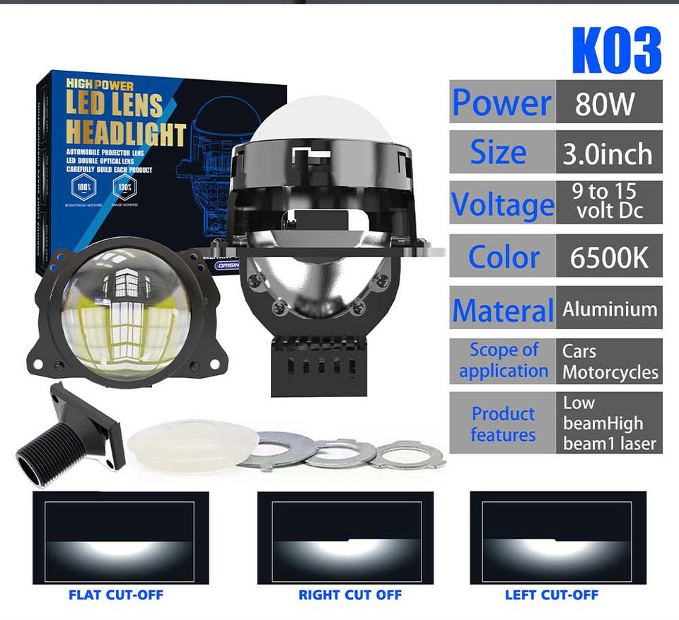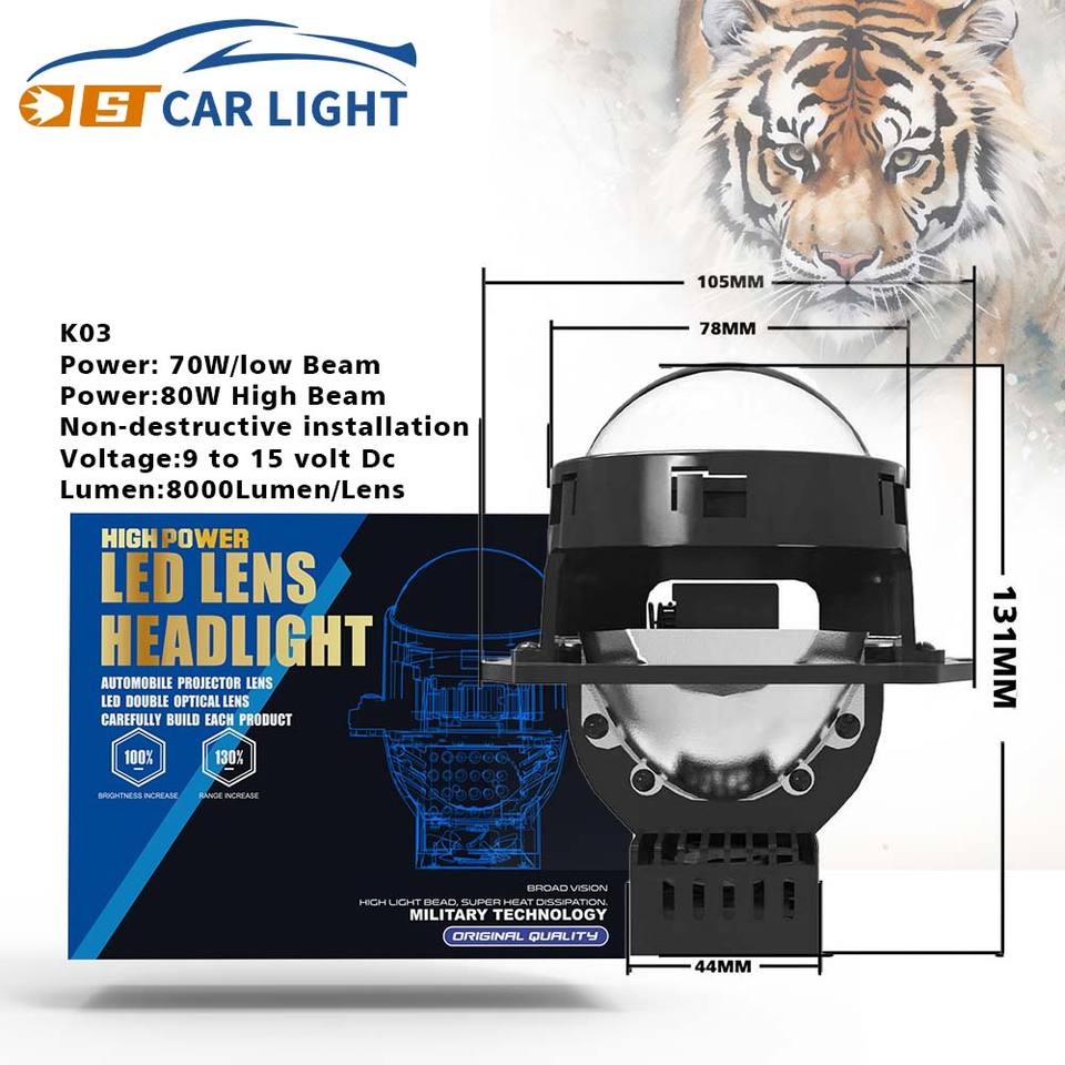 CST ไฟ LED K03 80W, ไฟ LED แบบ non-dทำละลาย6500K Hi/Lo Beam 3.0เลนส์โปรเจคเตอร์กันน้ำ