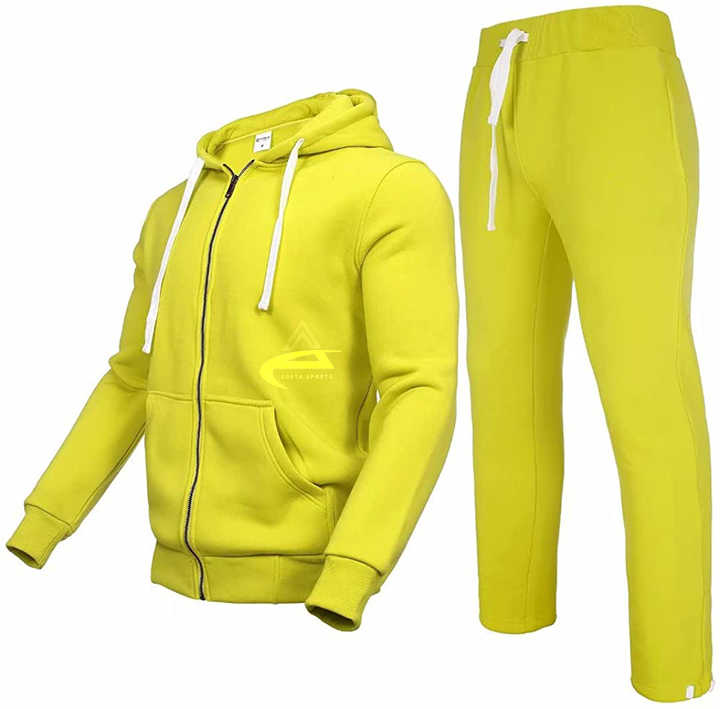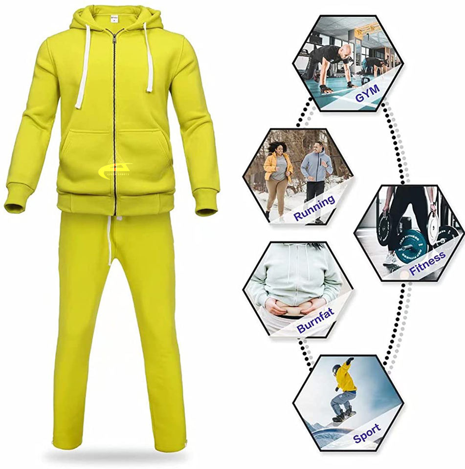 CST ชุดวอร์มผ้าฟลีซสำหรับผู้ชายชุดออกกำลังกายผ้าฟลีซสีเหลืองเรืองแสงออกแบบได้ตามต้องการพร้อมโลโก้สำหรับฤดูหนาว