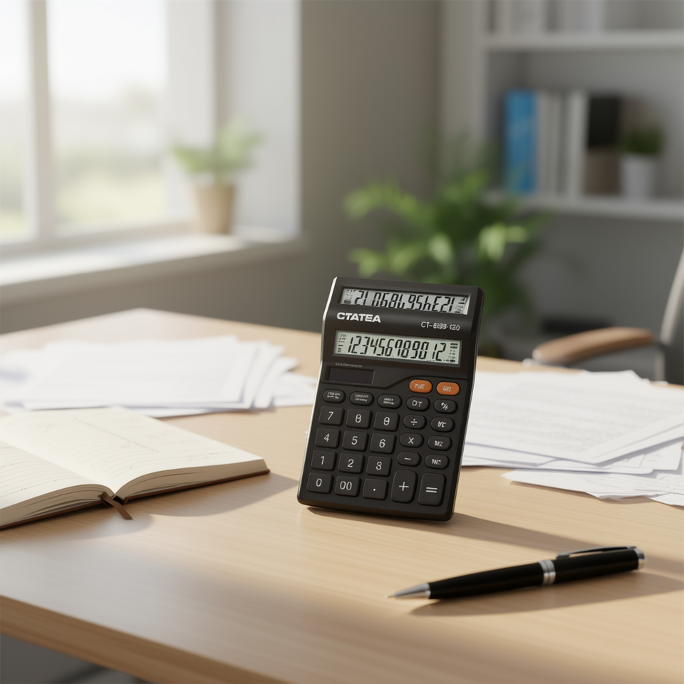 CTATEA CT-8588-120 เครื่องคิดเลขพลังงานแสงอาทิตย์ สีดำขาว ผสมผสาน จอแสดงผล 12 หลัก ใช้พลังงานได้สองระบบ