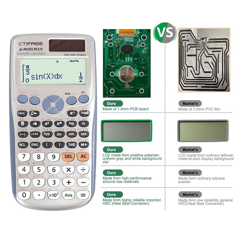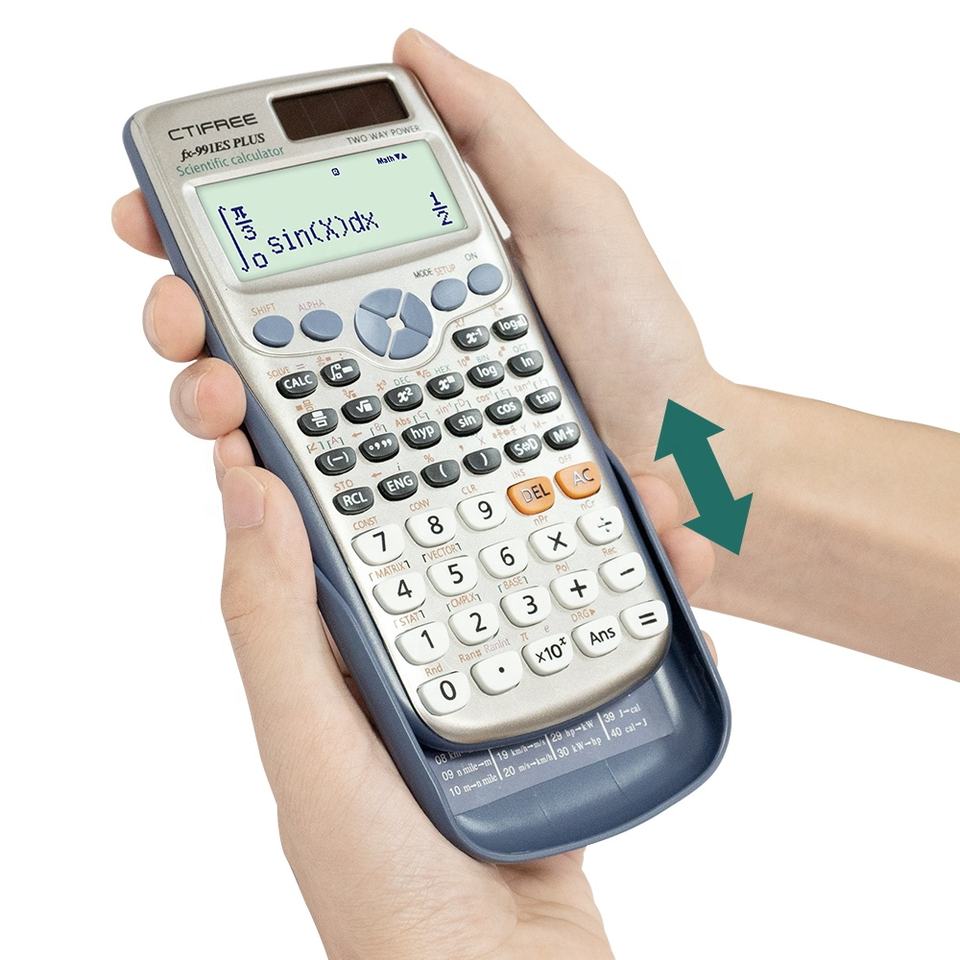 เครื่องคิดเลขวิทยาศาสตร์ CTIFREE รุ่น 991ES-Plus 417 ฟังก์ชัน ใช้พลังงานจากแบตเตอรี่แบบกระดุม จอแสดงผล 10+2 หลัก วัสดุพลาสติก พร้อมปฏิทิน