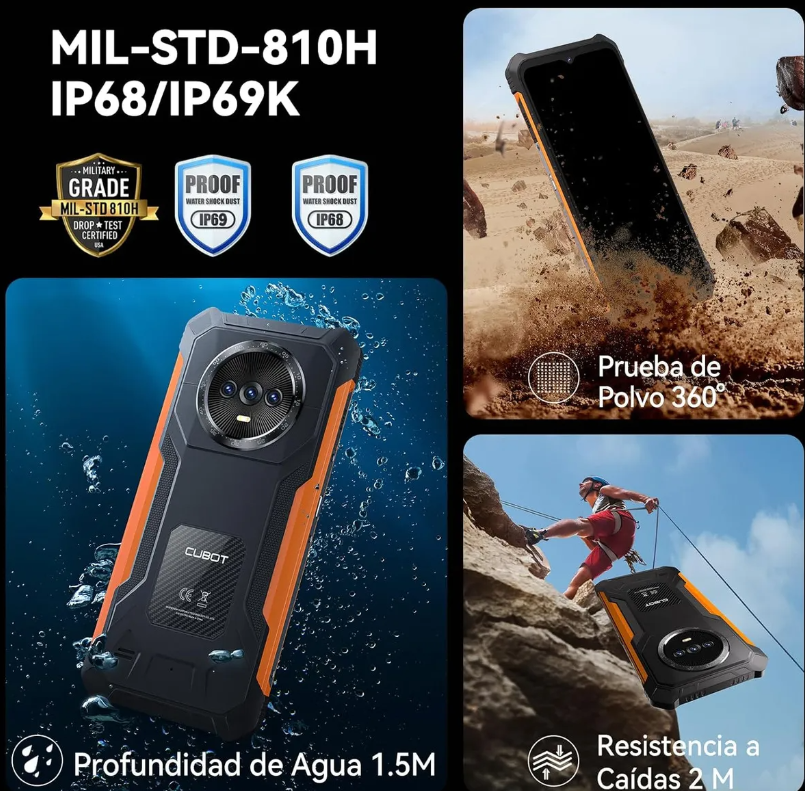 CUBOT KINGKONG ES โทรศัพท์มือถือที่ทนทานที่สุด หน้าจอ 6.56 นิ้ว HD+ ความจุ 6+128GB ROM มาตรฐาน IP69K รองรับ 2 ซิม ชิปประมวลผล Octa-core ระบบปฏิบัติการ Android 14 รีเฟรชเรท 90Hz แบตเตอรี่ 5100mAh กล้องหลัก 48MP