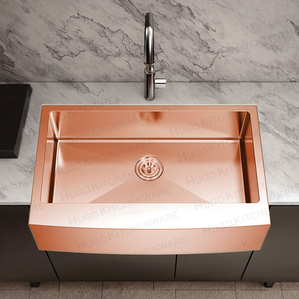 CUPC Nano Gold Stainless Steel 304 Kitchen Sink Single Bowl Apron Front Drop-In Farm House Strainer Faucet Not Included