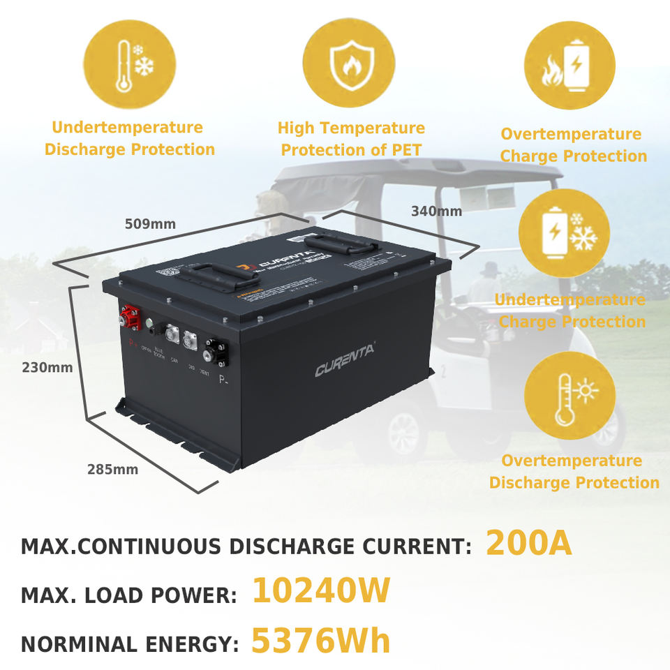Curenta แบตเตอรี่ลิเธียมไอออนพร้อมจอแสดงผล LCD, แบตเตอรี่ LiFePO4 48โวลต์51.2โวลต์105AH รถกอล์ฟ