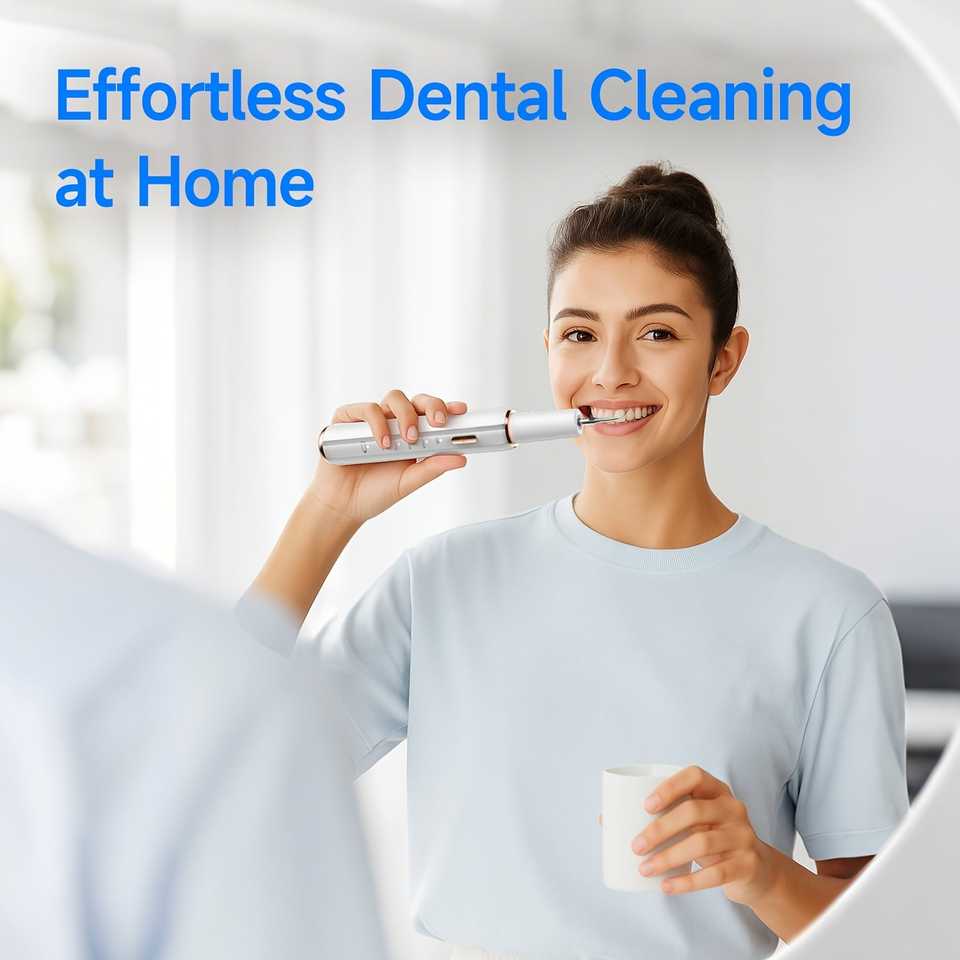คิววี่ สวัสดี! ชุดทำความสะอาดฟันด้วยไฟ LED ดีไซน์ตามหลักสรีรศาสตร์ สีขาว ปรับได้ 5 โหมด ชาร์จไฟได้ผ่าน USB