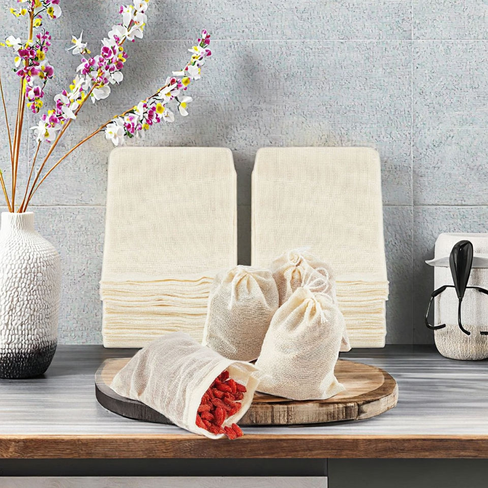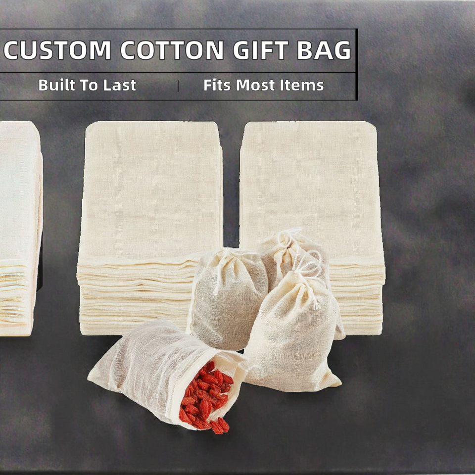 ถุงผ้ามัสลินฝ้ายธรรมชาติแบบไม่ฟอกสี ขนาด 6x8 นิ้ว สำหรับใส่ของขวัญ-เครื่องเทศ กาแฟ ชา ซุป น้ำเกรวี่ น้ำซุปตุ๋น
