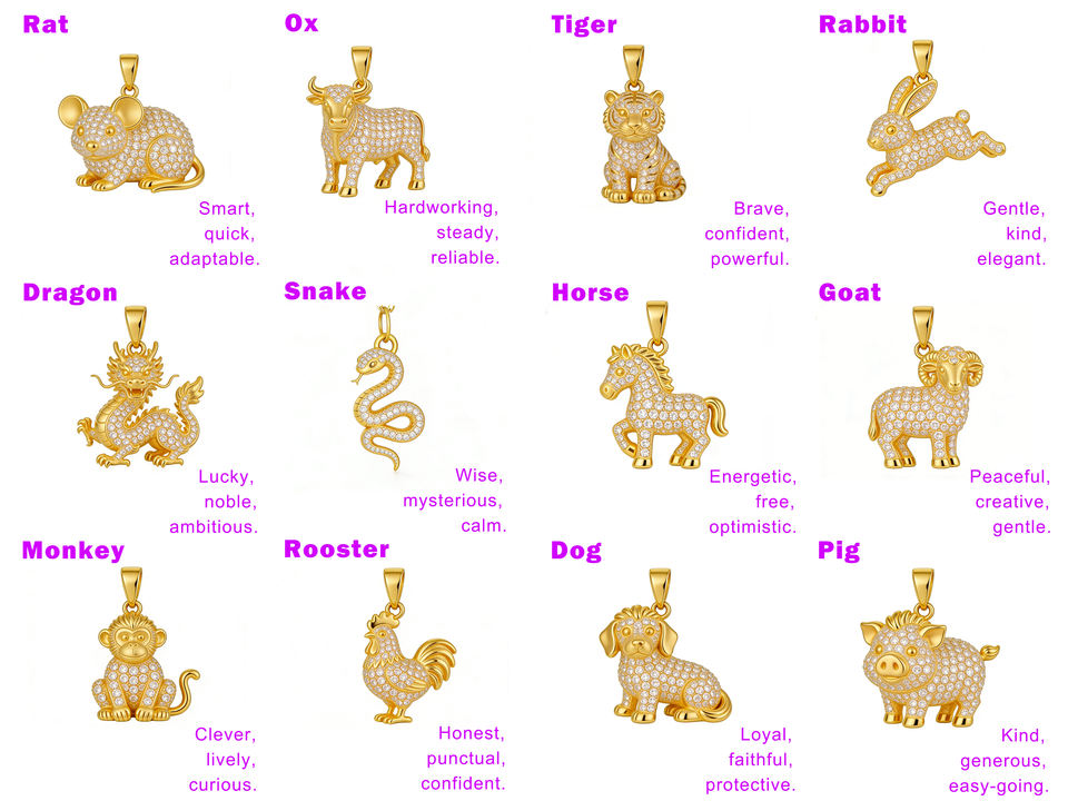 สร้อยคอเงินแท้ชุบทอง 14K ประดับเพชร CVD ผลิตในห้องปฏิบัติการ ดีไซน์คลาสสิก เหมาะเป็นของขวัญหมั้นสุดหรู พร้อมจี้รูปจักรราศีจีน 12 ราศี