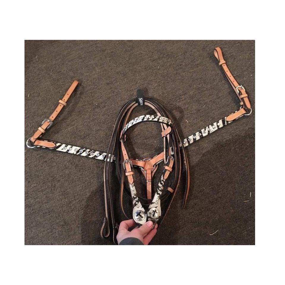 Headstall แบบตะวันตกที่กำหนดเองน้ำหนักเบา headstall หนังตะวันตกที่มีคู่ Breastplate รวมกับ reins หนัง OEM & ODM