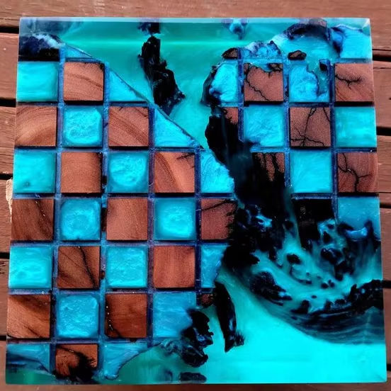 ชุดกระดานหมากรุกทำจากไม้และเรซินกล่องหมากรุกชุดเกมสุดหรูทำจากเรซิ่นสีแดงสีดำชิ้นหมากรุกโดยหัตถกรรม tayyab
