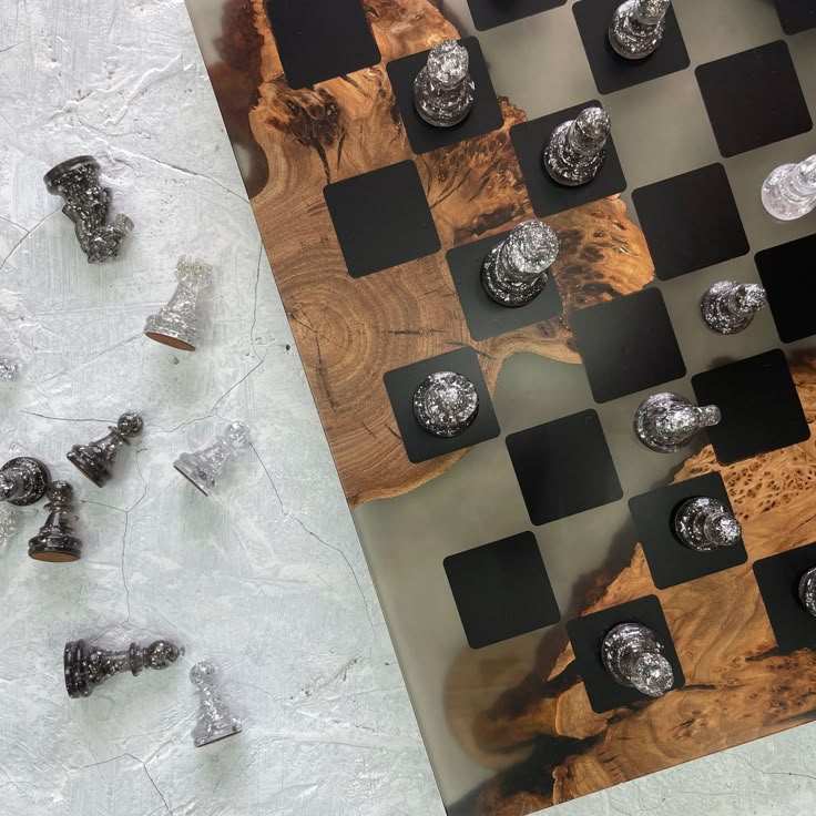 กล่องกระดานหมากรุกไม้และเรซิ่นแบบกำหนดเอง ชุดเกมหมากรุกมืออาชีพ ทำด้วยมือ หรูหรา ตัวหมากรุกสีแดงดำ ปรับแต่งสีได้