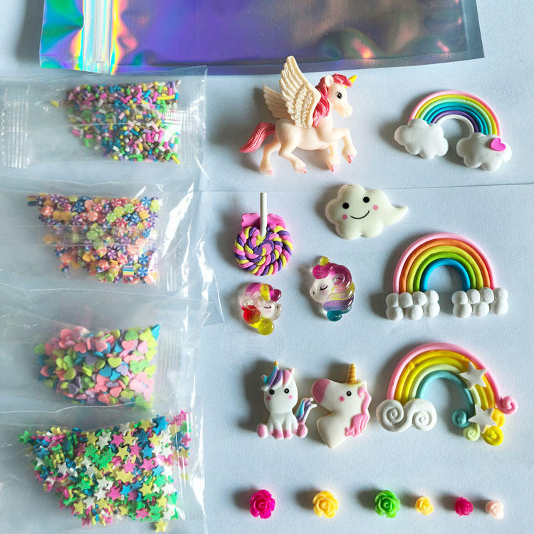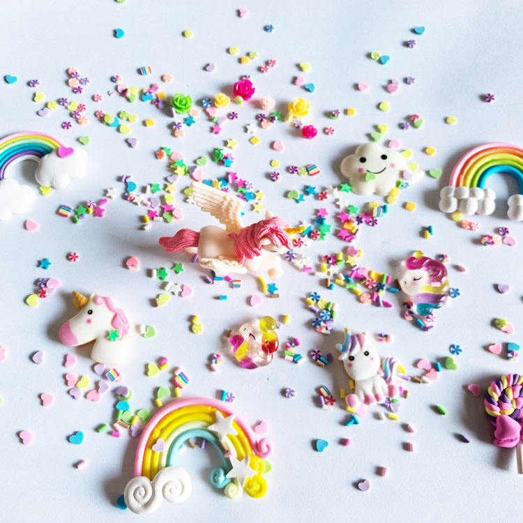 CUTE DIY Craft Miniature Fairy Garden Resin unicorn rainbow Candy Lollipop Flower Figurine Flatback Cloud Slime Charm Kid Gifts