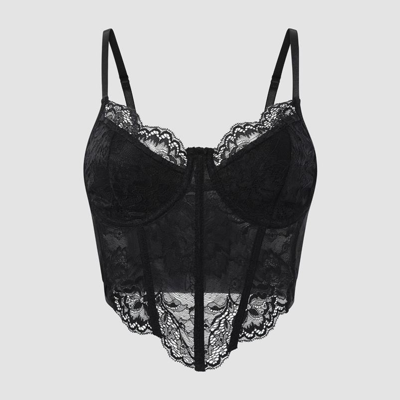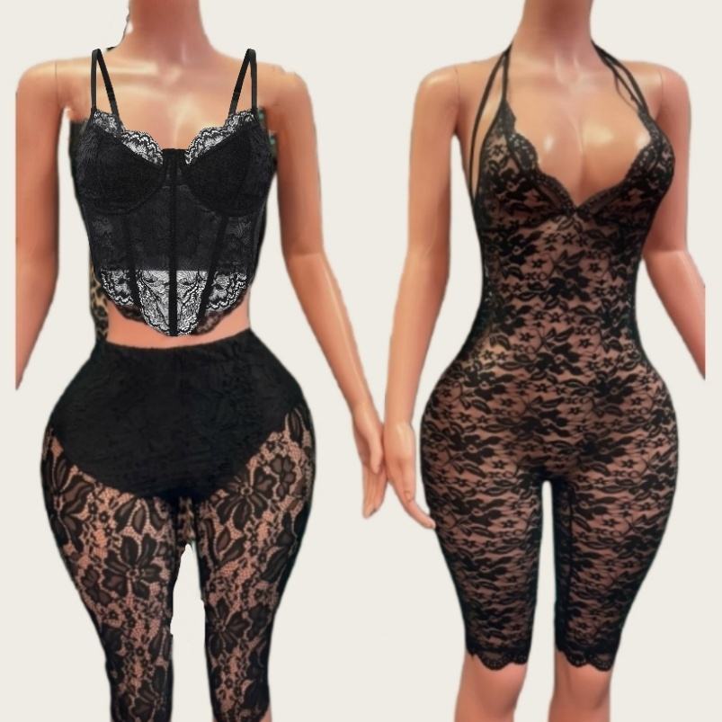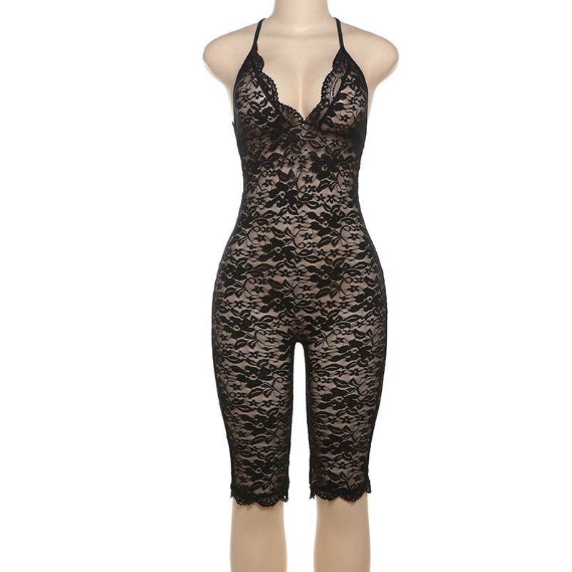 Viviblook ชุด Z0206ST01เซ็กซี่ใหม่ชุดเด็กผู้หญิงคอวีลึกปักลูกไม้เสื้อซีทรูแขนกุดและกางเกงเอวสูง