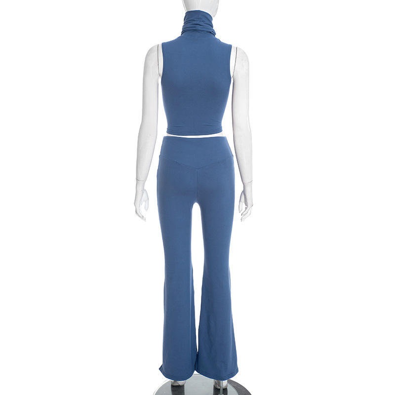 ชุดเสื้อผ้าผู้หญิง Viviblook Q25ST424 ชุดใหม่ คอสูง จับจีบ แขนกุด กางเกงเอวสูง ชุดสองชิ้น