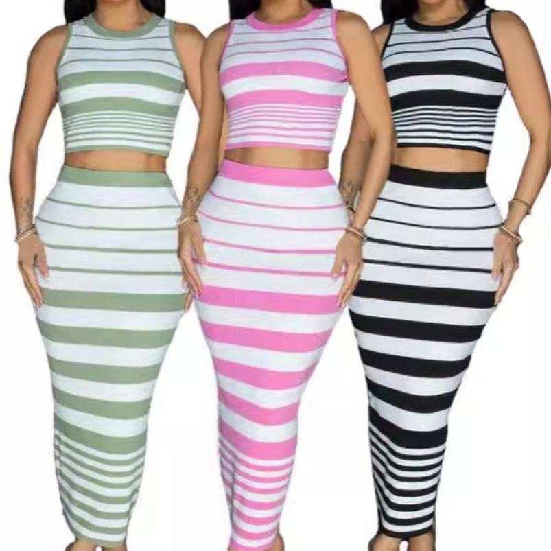 Viviblook ชุด2ชิ้นสำหรับผู้หญิงเสื้อกั๊กลายทางของ Z416ST01มาใหม่