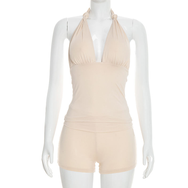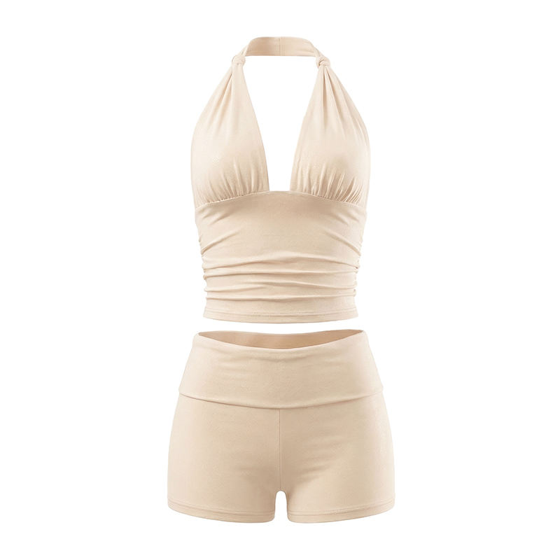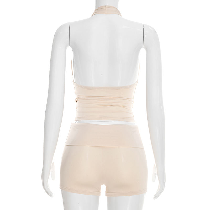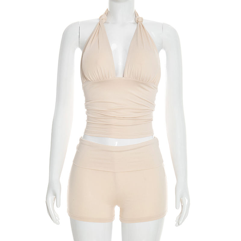 วิวิบลุค Y26ST031 ชุดฤดูร้อนสำหรับผู้หญิง เสื้อกล้ามผูกโบว์แบบไม่มีแขน กางเกงขาสั้น ชุดสองชิ้น