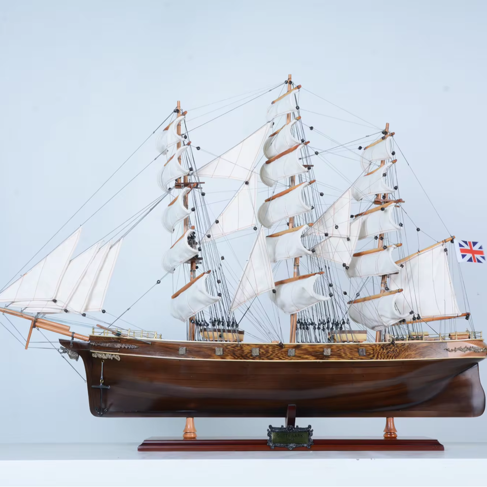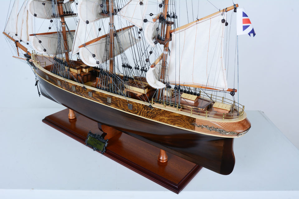 ป้ายไม้โค้ง CUTTY SARK ขนาด 70 ซม. สำหรับตกแต่งบ้านหรือสำนักงาน สไตล์เรือเดินสมุทร ทำจากไม้ซีดาร์สีดำ งานฝีมือไม้ กล่องไม้