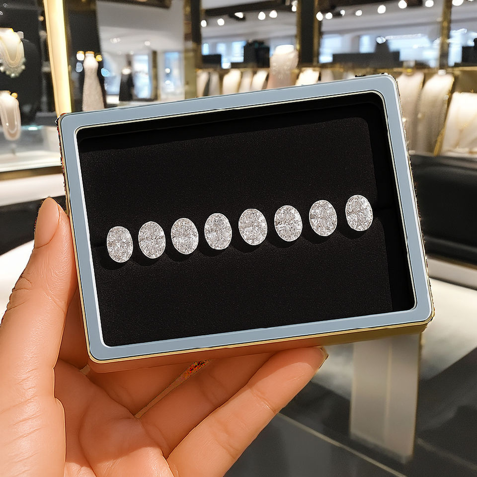 เพชรหลวมทรงรี 1 กะรัต 5 กะรัต ผลิตในห้องปฏิบัติการ ได้รับการรับรอง CVD สี E ความสะอาด VVS2-VS1 ใบรับรอง IGI จาก SHREERAJ