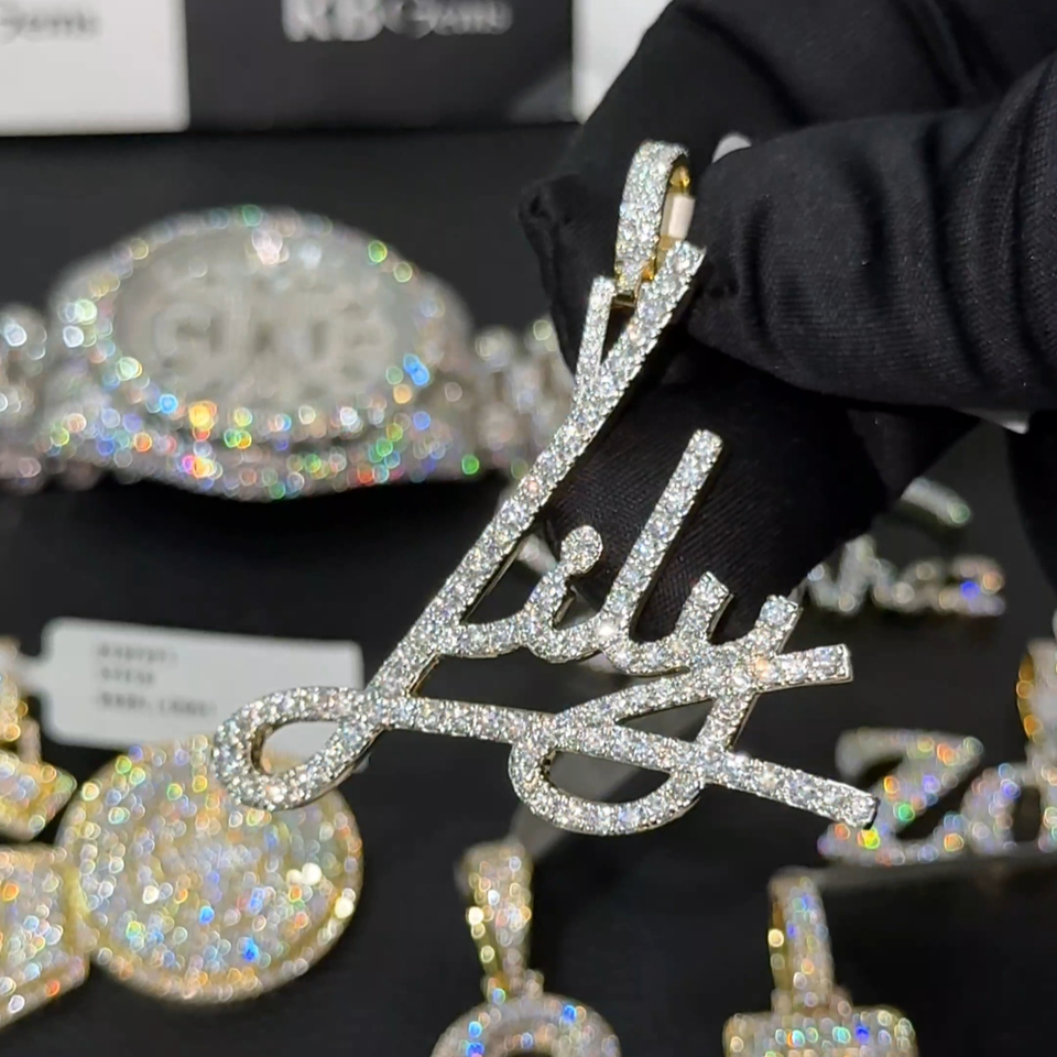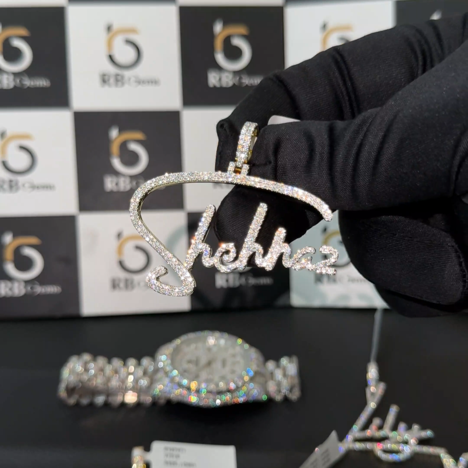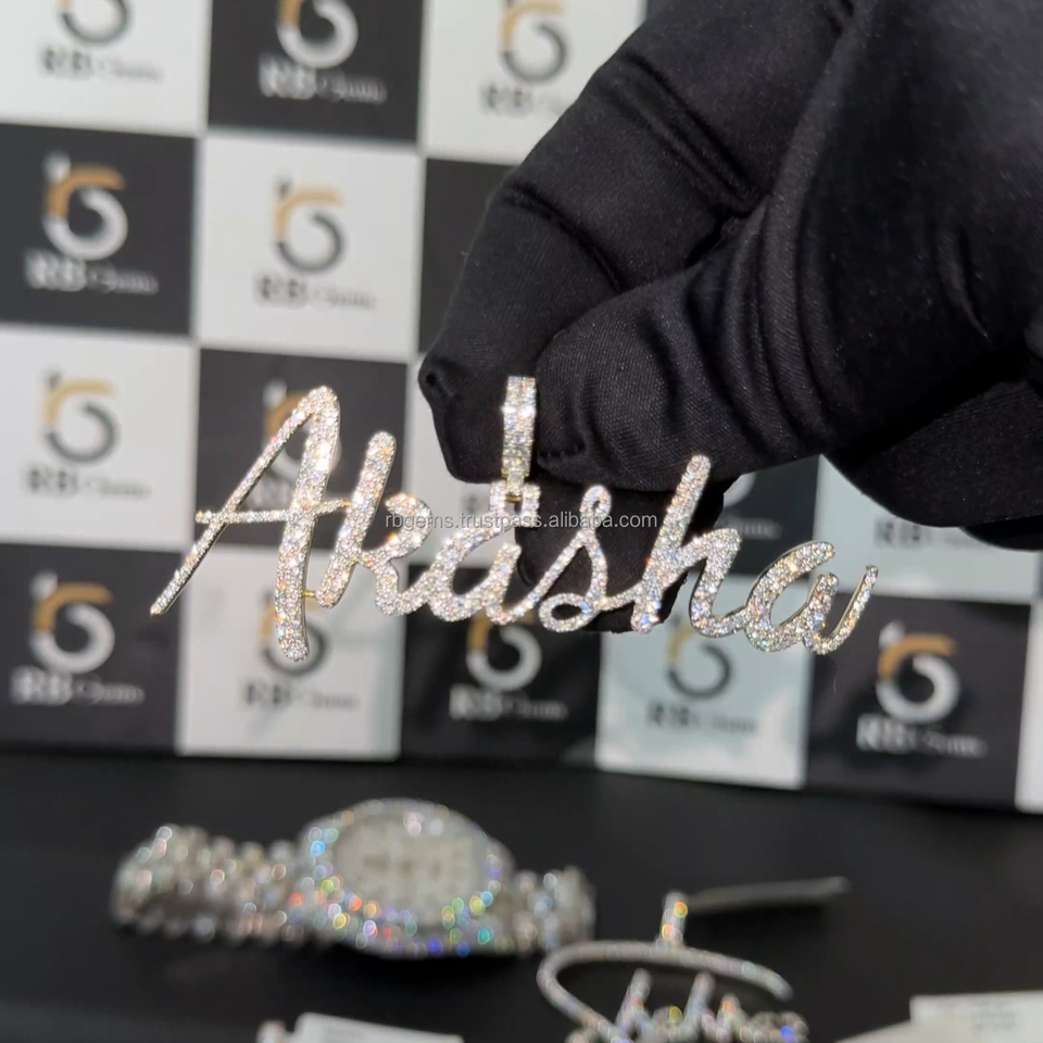 จี้เพชรโมอิสซาไนต์รูปตัวอักษร RB GEMS สไตล์ฮิปฮอป เงินแท้ 925 ประดับเพชรเต็มเส้น สร้อยคอพร้อมจี้เพชรโมอิสซาไนต์สั่งทำได้