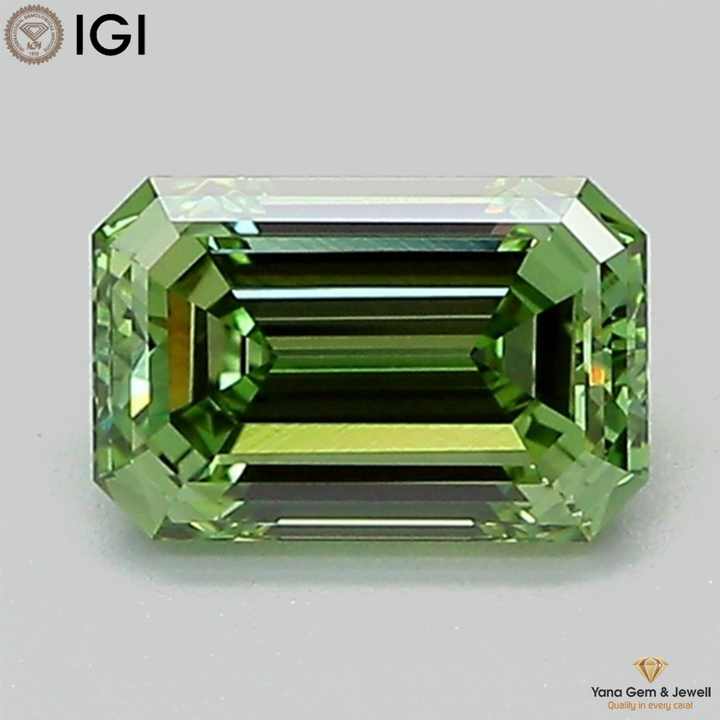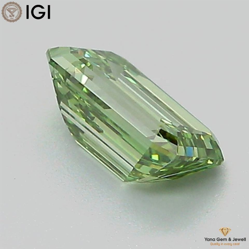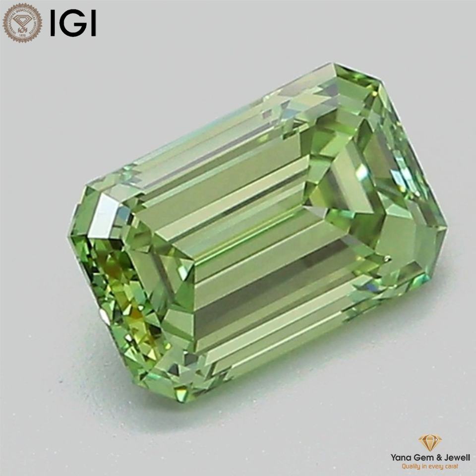 เพชร CVD ผลิตในห้องปฏิบัติการ 1.00 กะรัต ทรงมรกต ความสะอาดระดับ VS2 สีเขียวสดใส พร้อมใบรับรอง IGI พร้อมสำหรับการออกแบบตามสั่ง