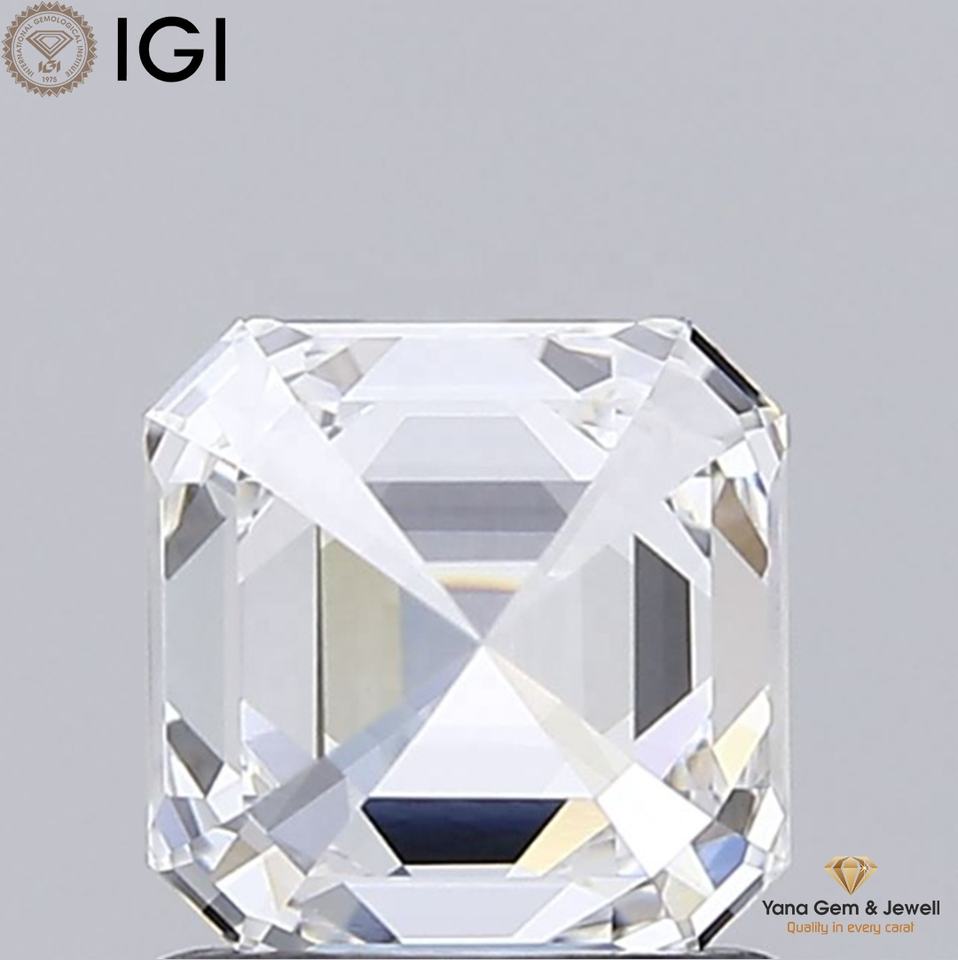 เพชร CVD ผลิตในห้องปฏิบัติการ น้ำหนัก 1.01 กะรัต ทรง Asscher พร้อมใบรับรอง IGI สี E ความสะอาด VVS2 สำหรับเครื่องประดับชิ้นเอกที่ไม่เหมือนใคร