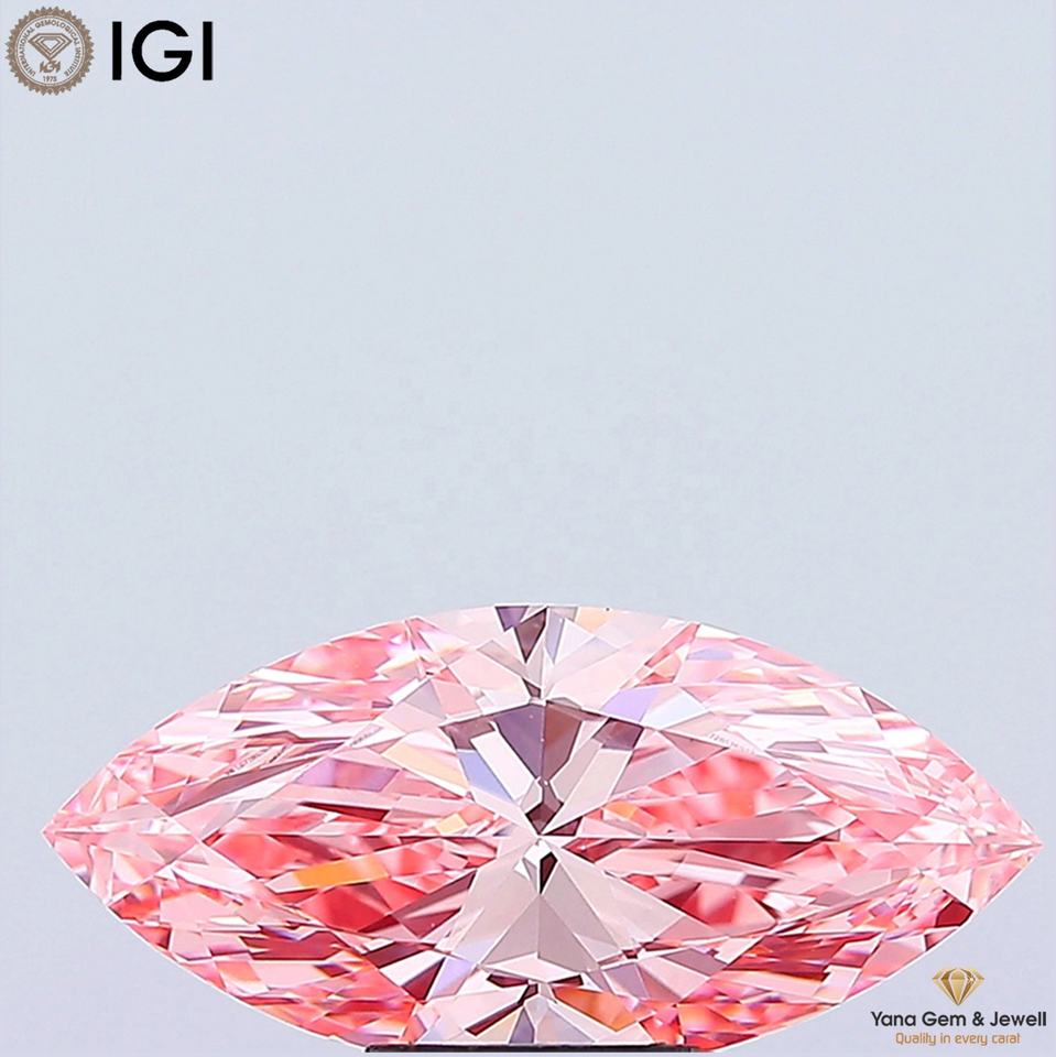 เพชร CVD ผลิตในห้องปฏิบัติการ 4.01 กะรัต สีชมพูสดใส ระดับความสะอาด VVS2 รูปทรงมาร์คีส์ พร้อมใบรับรอง IGI สำหรับแหวนหมั้น