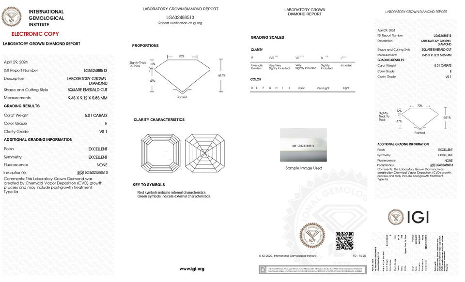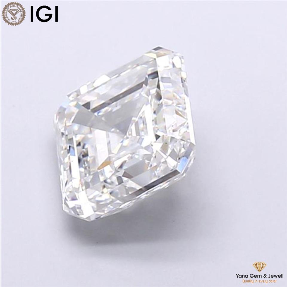 เพชร CVD ผลิตในห้องปฏิบัติการ 5.01 กะรัต รูปทรง Asscher ได้รับการรับรองจาก IGI ความสะอาดระดับ VS1 สี E เหมาะสำหรับทุกโอกาสพิเศษ