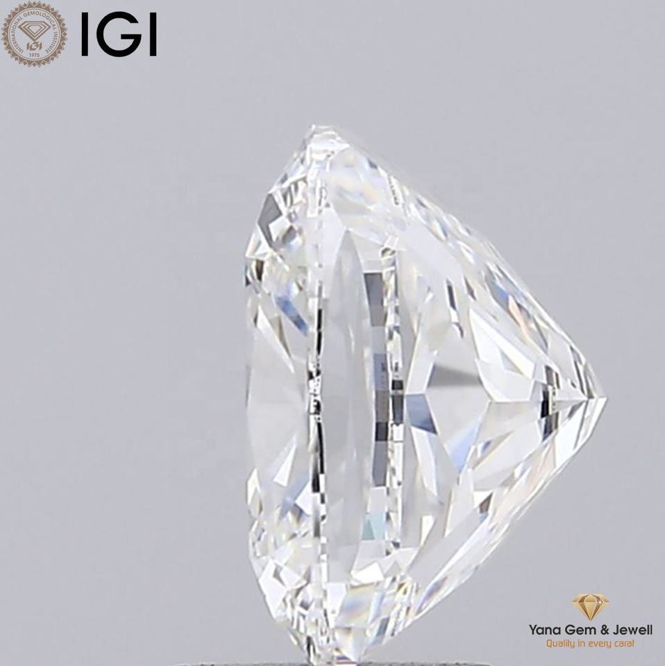 เพชร CVD ผลิตในห้องปฏิบัติการ 5.01 กะรัต สี F ความสะอาด VVS2 รูปทรงคุชชั่น พร้อมใบรับรอง IGI สำหรับจี้แบบสั่งทำพิเศษ