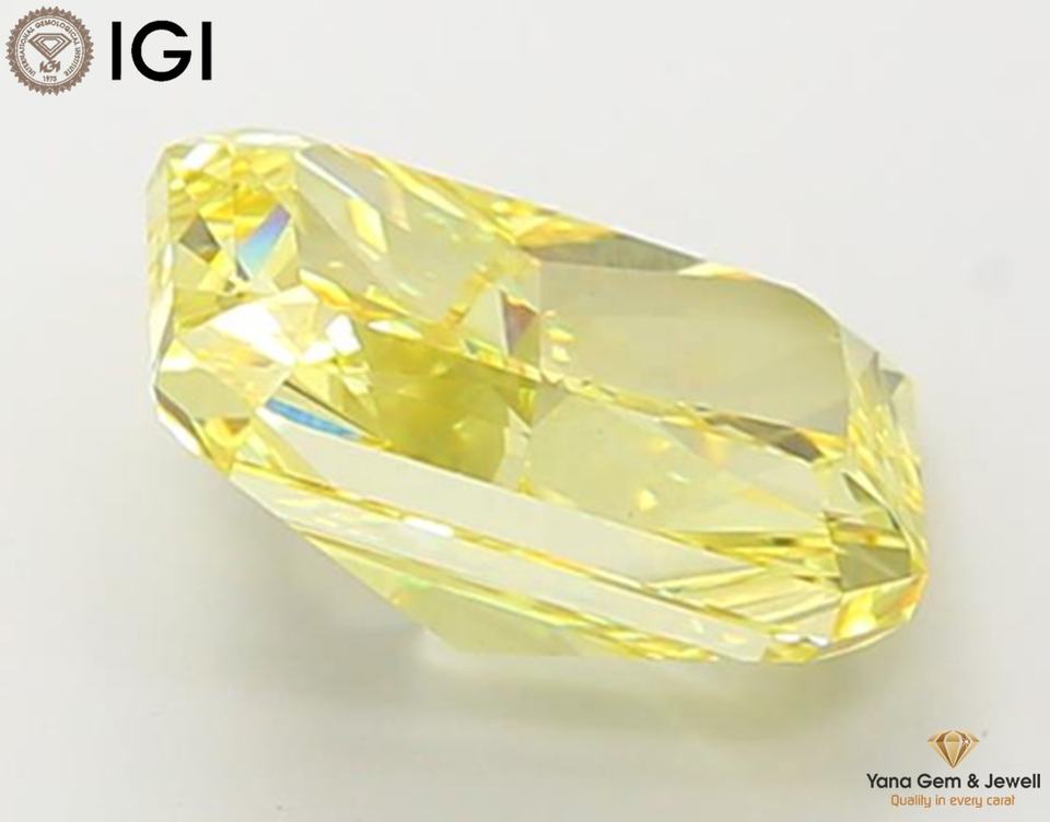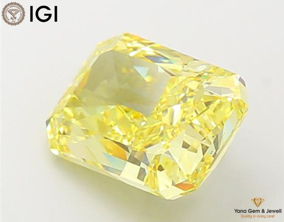 เพชร CVD ผลิตในห้องปฏิบัติการ สีเหลืองแฟนซีสดใส ความสะอาดระดับ VS1 น้ำหนัก 5.00 กะรัต พร้อมใบรับรอง IGI ทรงรัศมี สำหรับเครื่องประดับดีไซเนอร์