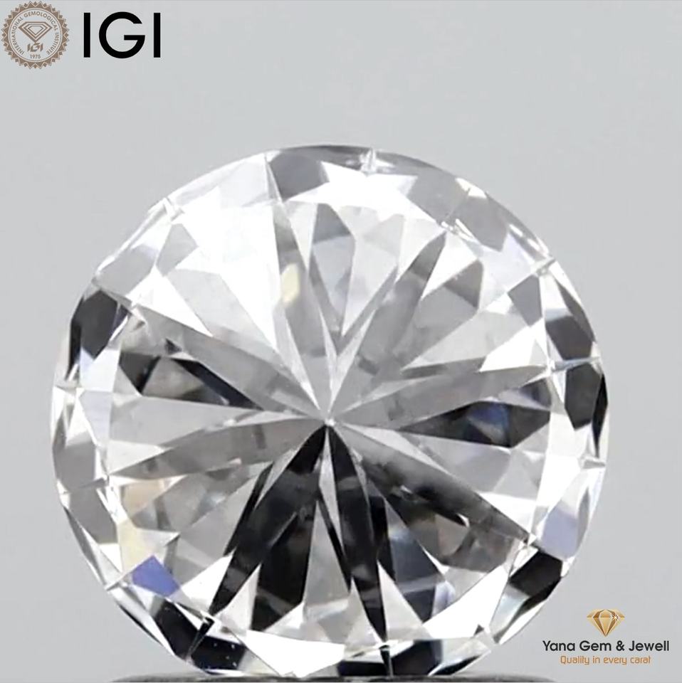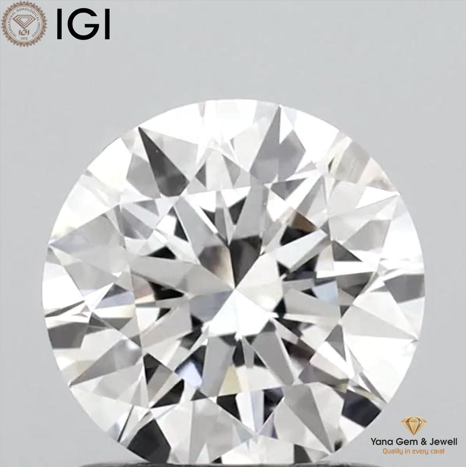 เพชร CVD ทรงกลมขนาด 6.46 มม. รับรองโดย IGI น้ำหนัก 1.00 กะรัต สำหรับแหวนหมั้น จุดศูนย์กลางวงแหวน สี F ความสะอาด VVS1