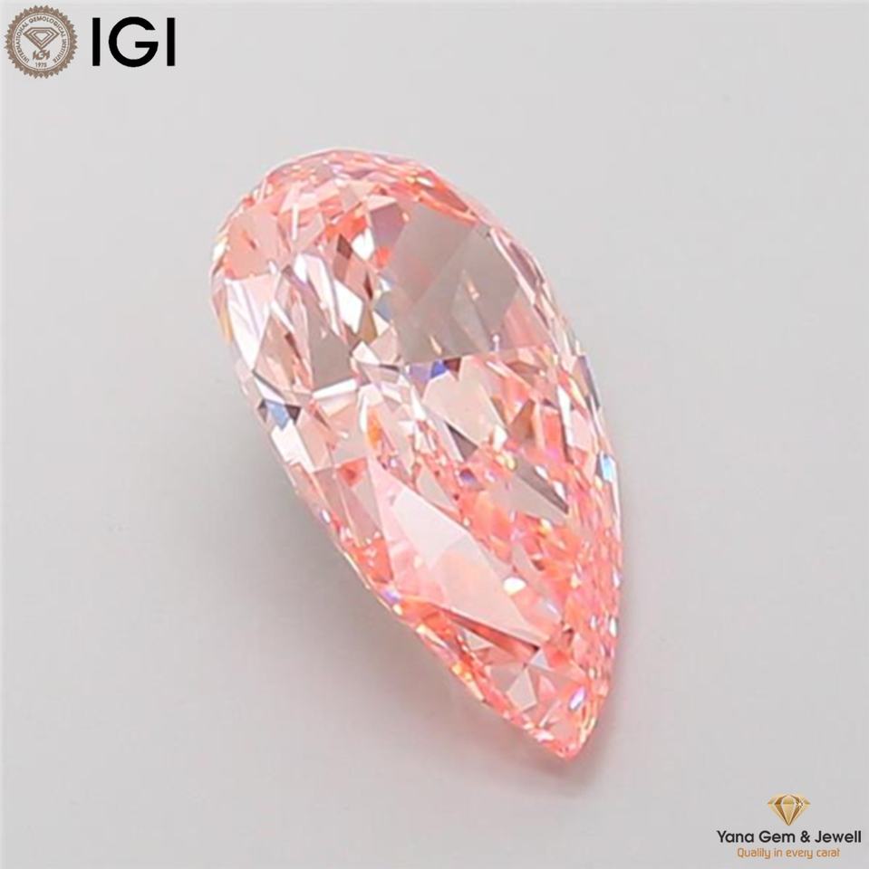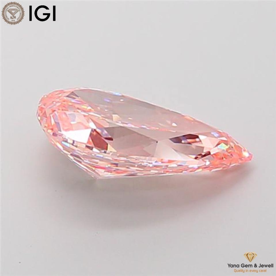 เพชร CVD ที่เพาะเลี้ยงในห้องปฏิบัติการ ความใส VS1 สีชมพูสดใสแฟนซี 4.00 กะรัต รูปทรงลูกแพร์ พร้อมใบรับรอง IGI สำหรับจี้ระดับมืออาชีพ