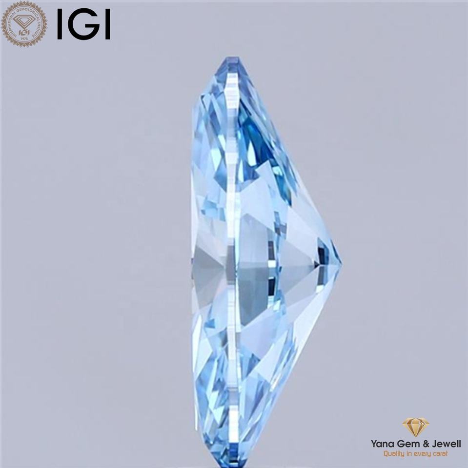 เพชร CVD ที่เพาะเลี้ยงในห้องปฏิบัติการ พร้อมใบรับรอง IGI น้ำหนัก 3.00 กะรัต รูปทรงมาร์คีส์ สีฟ้าสดใสแฟนซี ความสะอาดระดับ VS1 ผลิตเพื่อความคงทนตลอดกาล