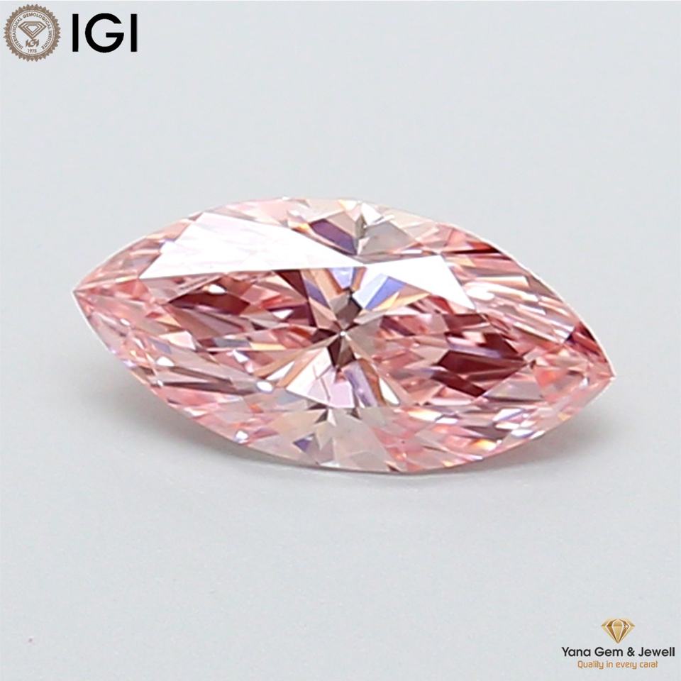 เพชร CVD ผลิตในห้องปฏิบัติการ พร้อมใบรับรอง IGI น้ำหนัก 1.00 กะรัต สีชมพูสดใส ระดับความสะอาด VS2 รูปทรงมาร์คีส์ สำหรับเครื่องประดับหรูหรา