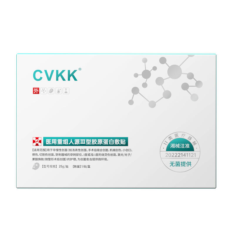 แผ่นประคบเย็นทางการแพทย์ CVKK 5 ชิ้น คอลลาเจนรีคอมบิแนนท์ปลอดเชื้อ สำหรับผิวบอบบางหลังทำทรีทเมนต์ความงาม