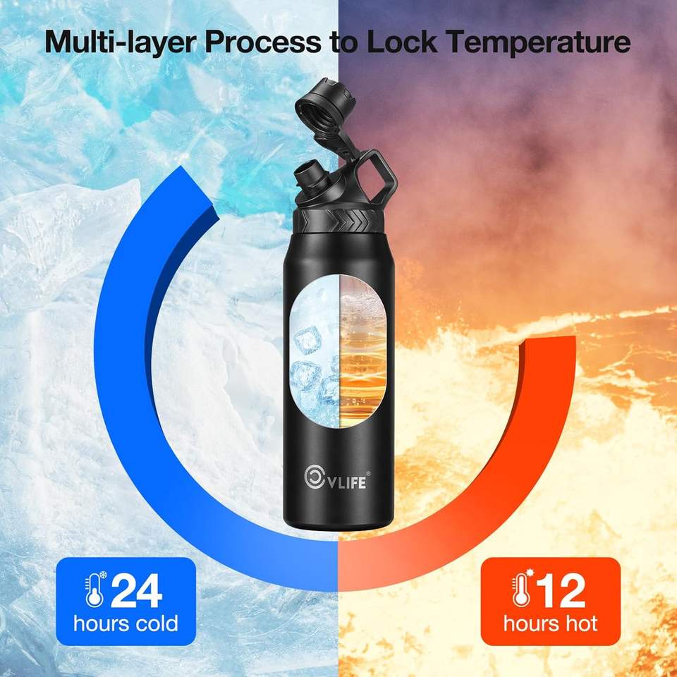 Cvlife 32ออนซ์ขวดน้ำสแตนเลสสำหรับเล่นกีฬาปราศจากสาร BPA ดีไซน์ฝาเอียง