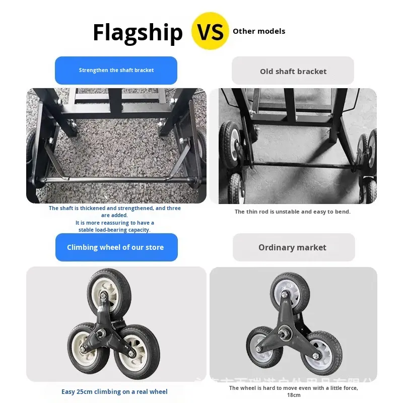 รถเข็นช่วยปีนบันได CW โครงเหล็กเสริมแรง ดีไซน์สามล้อ พับเก็บได้ รับน้ำหนักมาก พกพาสะดวก สีดำ สำหรับใช้ในบ้านและชุมชน