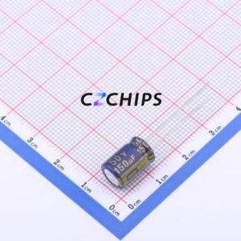 ตัวเก็บประจุอิเล็กโทรไลต์อะลูมิเนียมแบบ Through-Hole รุ่น CX151MG812B ขนาด D8xL12 มม. 150uF 20% 50V 465mA-100kHz
