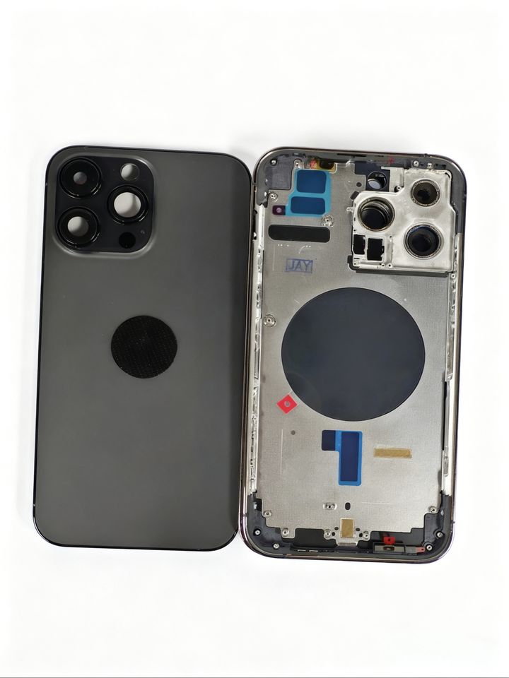 ตัวครอบด้านหลังกระจก CXL OEM สำหรับ14Pro ที่มีประตูแบตเตอรี่และปุ่มด้านข้าง