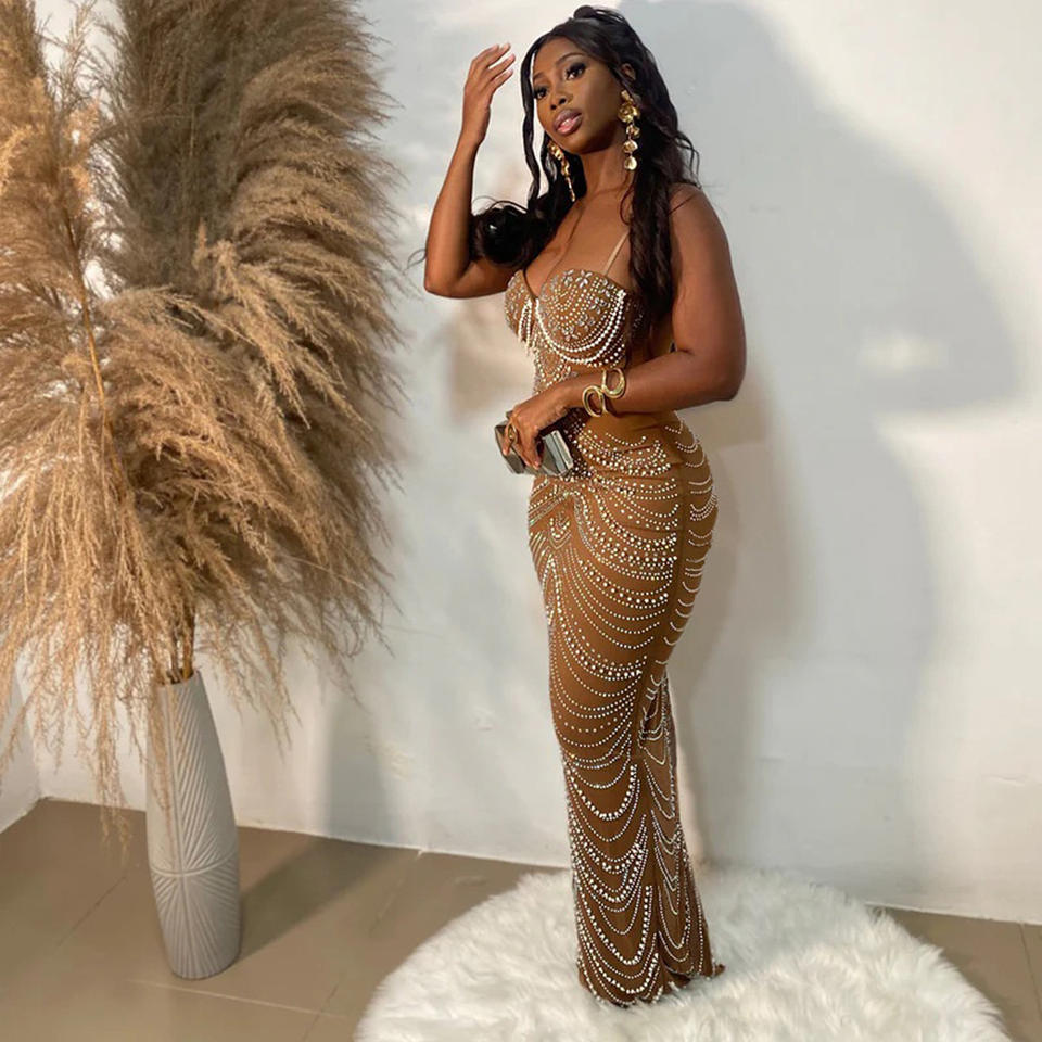 ชุดราตรีรัดรูปประดับเพชรและลูกปัดสำหรับผู้หญิง CY901322 ชุดเดรสยาวเซ็กซี่สำหรับงานปาร์ตี้ งานพรอม และงานเลี้ยง
