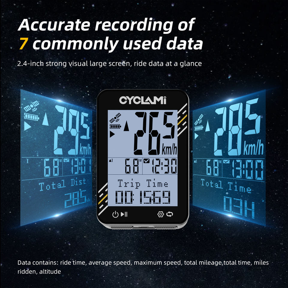 CYCLAMI BKV-310 ดีไซน์สปอร์ตบางเฉียบ GPS ไร้สาย หน้าจอ 2.4 นิ้ว เครื่องวัดอัตราการเต้นของหัวใจ ไมล์จักรยาน วัดความเร็ว วัดระยะทาง IPX7