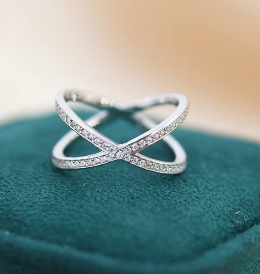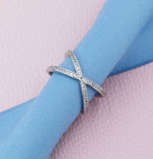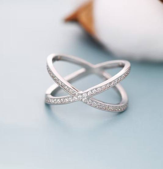 แหวนรูปกากบาท CZ ทำจากเงินสเตอร์ลิง แหวนรูปกากบาท แหวนรูปตัว X แหวนไขว้ แหวนทรงเรขาคณิตและมินิมอล