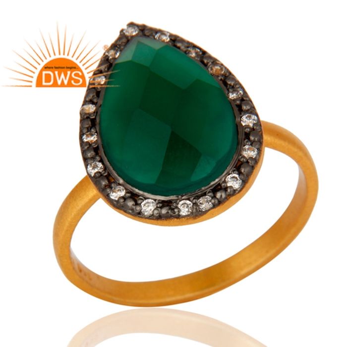 แหวนพลอยสีเขียว CZ ออนิกซ์ ดีไซน์ปี 2026 งานแฮนด์เมด ชุบทอง 18k เงินแท้ 925 ขายส่งจากผู้ผลิตเครื่องประดับ