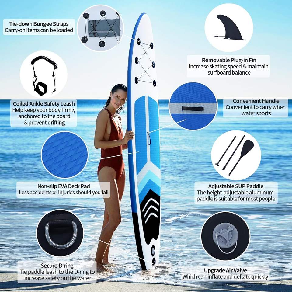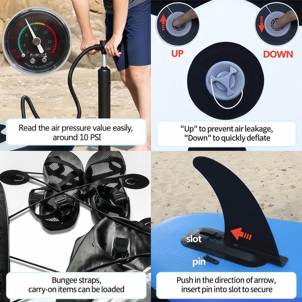 รายละเอียดอุปกรณ์บรรจุภัณฑ์:ไม้พาย, ปั๊มลม, กระเป๋าเป้, ชุดซ่อม, สายจูง