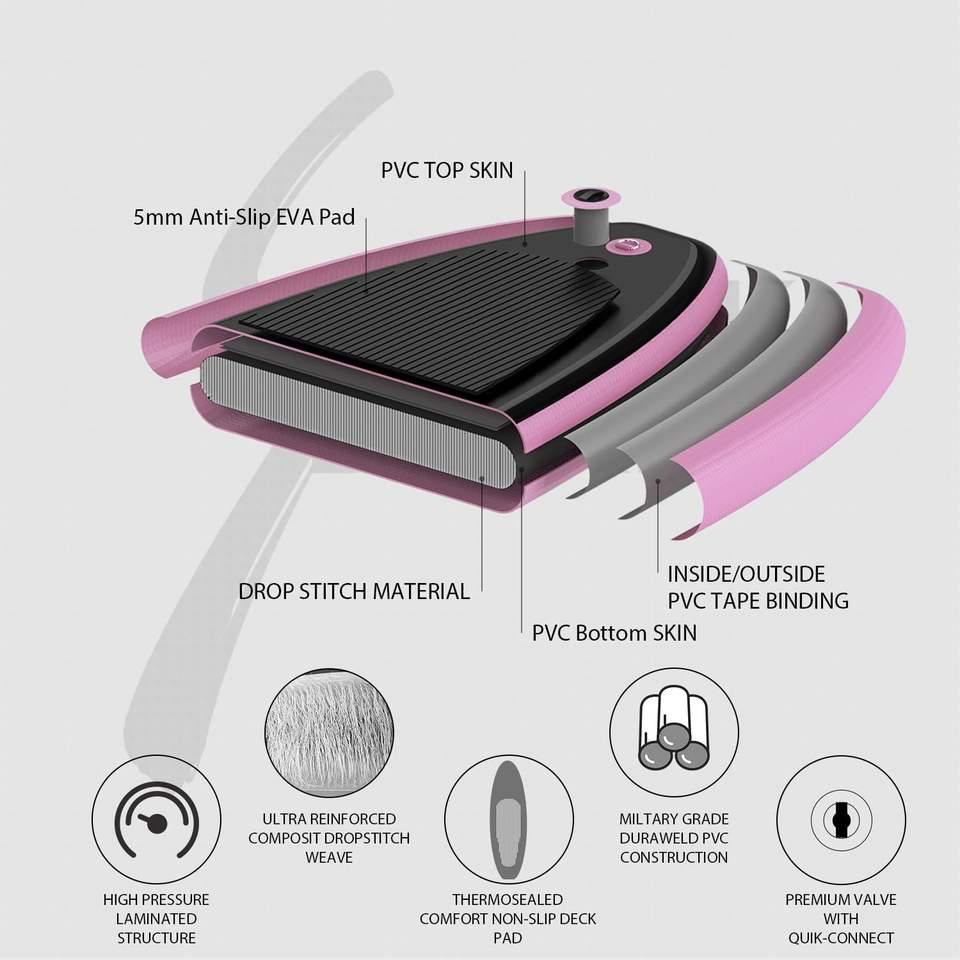 รายละเอียดอุปกรณ์บรรจุภัณฑ์:ไม้พาย, ปั๊มลม, กระเป๋าเป้, ชุดซ่อม, สายจูง